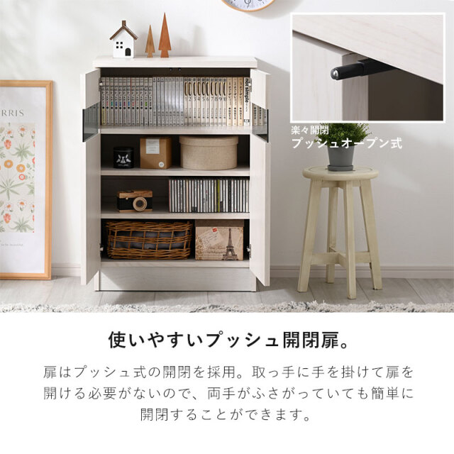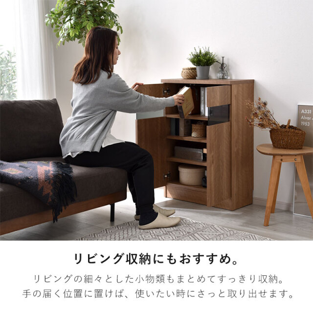 | デッドスペースだったカウンター下にぴったりな収納庫の登場です。高さは一般的なカウンター下のサイズに合わせて(約)85.5cmの高さに設計されています。このサイズは腰高窓と呼ばれる一般的な窓の高さと同じなので窓の下に置いて頂くにもぴったりなサイズとなっております。扉の中央にはガラス窓が装着されており中に何が入っているかひとめで解る便利な設計となっております。また下部の棚は可動棚となっておりますので収納したいものに応じて高さを変更して頂けます。 | |