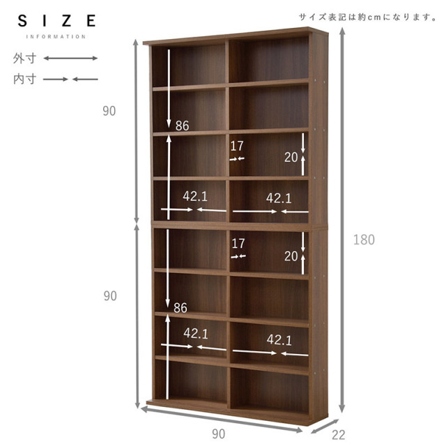 | 商品サイズ | 1段:(約)幅90cm×奥行き22cm×高さ90cm 2段:(約)幅90cm×奥行き22cm×高さ180cm |