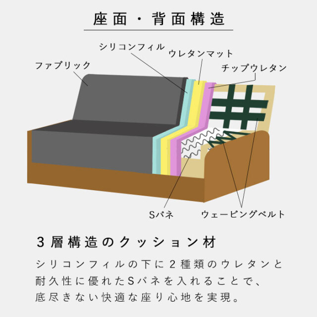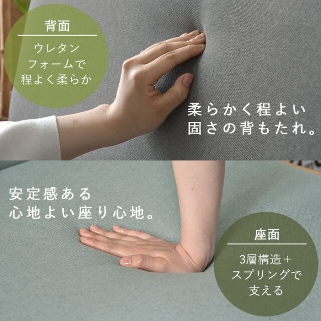 | 商品仕様 | 脚・側板・幕板:天然木(ラバーウッド) 貼り材:ポリエステル クッション材:Sバネ、ウェービングベルト、ウレタン、ポリエステル綿、不織布 |