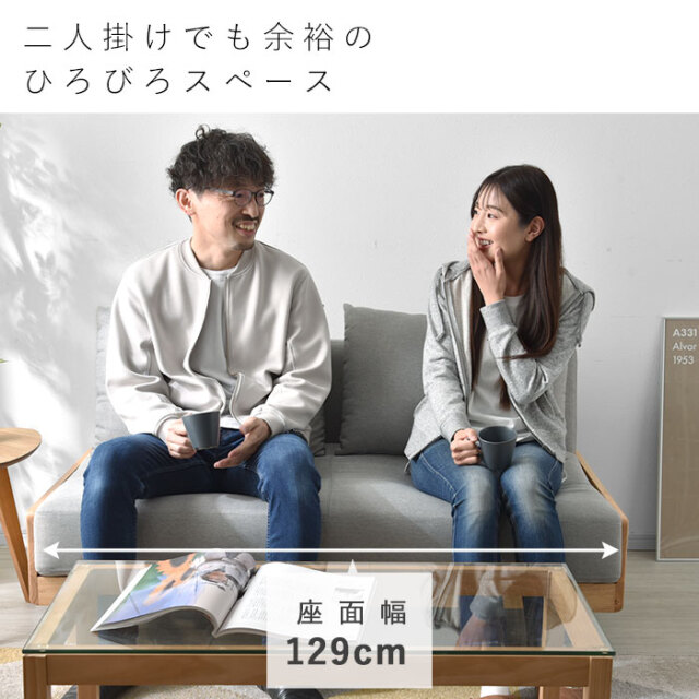 | 【デザインソファ KIYUI(キユイ)】 お部屋に置いても圧迫感が出ない、シンプルかつ洗練されたデザインにこだわり抜いたオリジナルソファ。 貴方のお部屋を開放感あふれるリラックス空間に導きます。 脚部やフレームに使われる天然木〈ラバーウッド〉はソフトな印象の木目と滑らかな質感が特徴。ファブリック生地との相性が良く、お部屋にぬくもりを与える仕上がりに。 がっしりしたフレームと脚はどこか重厚な雰囲気を与え上質さを演出します。 ソファにはひじ掛けがありません。 ひじ掛けを無くすことで余白を生み出し、部屋を広く、開放的に魅せることができます。 すっきりデザイン・二人掛けのちょうどいいサイズで、ワンルームなど一人暮らしのお部屋にもおすすめ◎ 座面は64cmと奥行が充分にあり、胡坐をかくなど、ゆったりとくつろぐことができます。 背もたれにもなるふかふかのクッションが2つ付属。 約20cmのしっかりした厚みがあなたの体を包み込みます。 ソファの背面はウレタンが入っているので程よくやわらか。 座面は2種類のウレタンとしっかりした耐久性のスプリングが入っており、安定感ある心地よい座り心地です。 ソファの座面幅は129cmと、二人で掛けても窮屈にならないスペースがあり、ゆったりリラックスすることができます。 耐荷重も200Kgと充分。 本体の脚部を外すと、ローソファとして使用することも。2wayでお楽しみいただけます。 脚にはキズ防止のフェルトが付いており、フローリングへのダメージを軽減します。 カラーは豊富な5色展開。あなたのお部屋にぴったりなカラーを見つかるはず。 | |