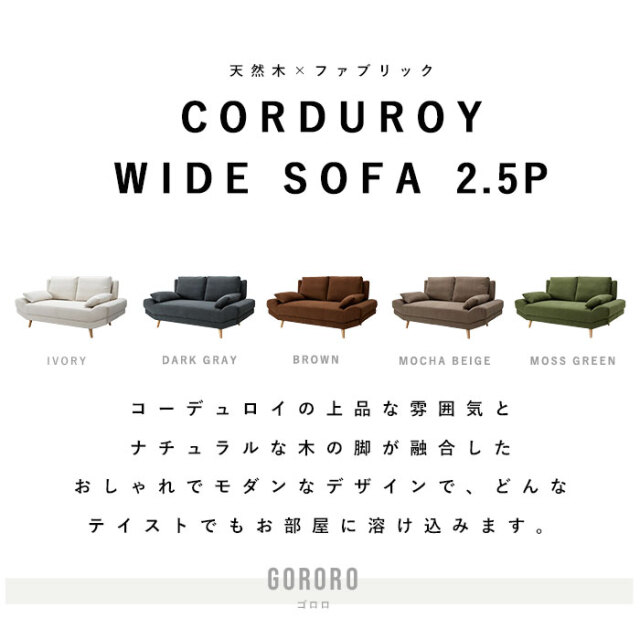 | 商品名 | コーデュロイ 2.5人掛け ワイドソファ 2.5Pソファ ゴロロ |