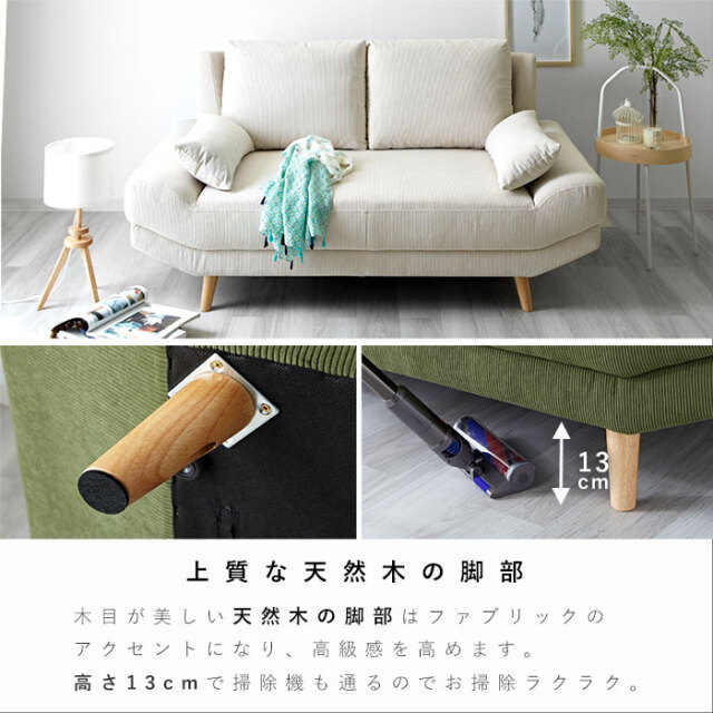 | 座っても寝転んでも心地がいい コーデュロイ×天然木 ソファ 2人掛け ゴロロ コーデュロイの上品な雰囲気とナチュラルな木の脚が融合したおしゃれでモダンなデザインで、どんなテイストでもお部屋に溶け込みます。 ソファでは座っているだけでなく、あぐらをかいたり、横になって寝転んで過ごす事もできる為、様々な姿勢で身体を休めながら寝られる。快適な座り心地のソファです。 張地には、コーデュロイを使用しており温かみのあるコーデュロイが空間を優しく演出しどこか懐かしく親しみやすさが感じられる優しい風合いです。またコーデュロイ特有の起毛の波打ちがあり、使い込むほどに豊かな表情を見せてくれます。 北欧系のお部屋にもアンティーク風のお部屋にもまたシンプルなお部屋にもどんなお部屋にも素敵になじみます。 開梱設置付きなので、届いたその日にすぐお使いいただけます。 横幅は約170cmあり、2人並んで座ったり横になってくつろいでいただく事も可能です。 座面は奥行き63cmあり、深く腰を掛けることができ、ゆったりとあぐらを かくこともできます。もちろん仰向けに寝転がることだってできますよ。 ソファと同色のクッションを2つ付き。 枕にしたり、腰当てや肘置きなどあると無いとでは便利さが違います。 | |