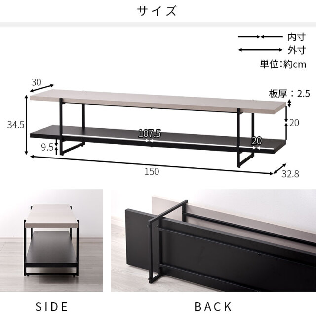 | 商品サイズ | (約)幅150cm×奥行き32.8cm×高さ34.5cm |