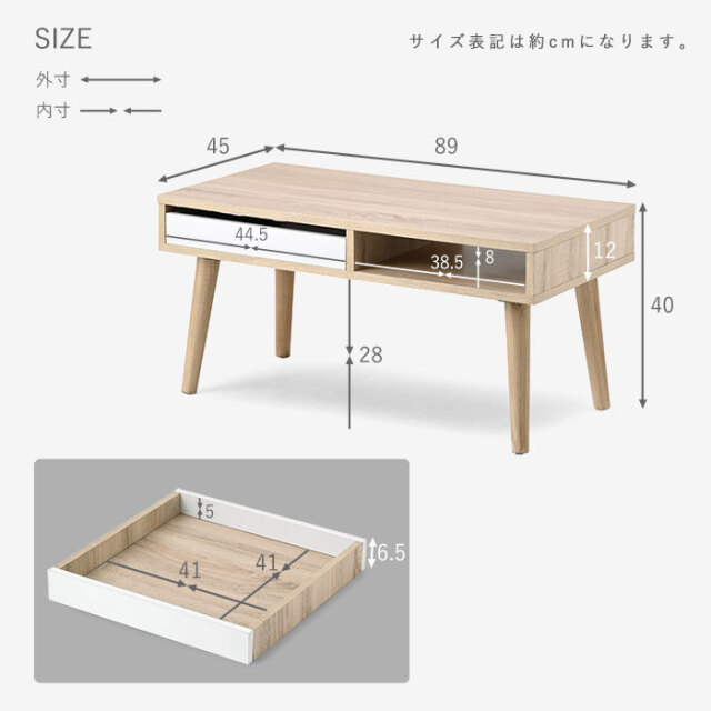 | 商品名 | センターテーブル ローテーブル 引き出し付き オープン収納 幅89cm フィッツ |