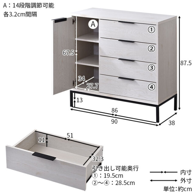 | 商品サイズ | (約)幅90cm×奥行き38(取手込み40)cm×高さ87cm |