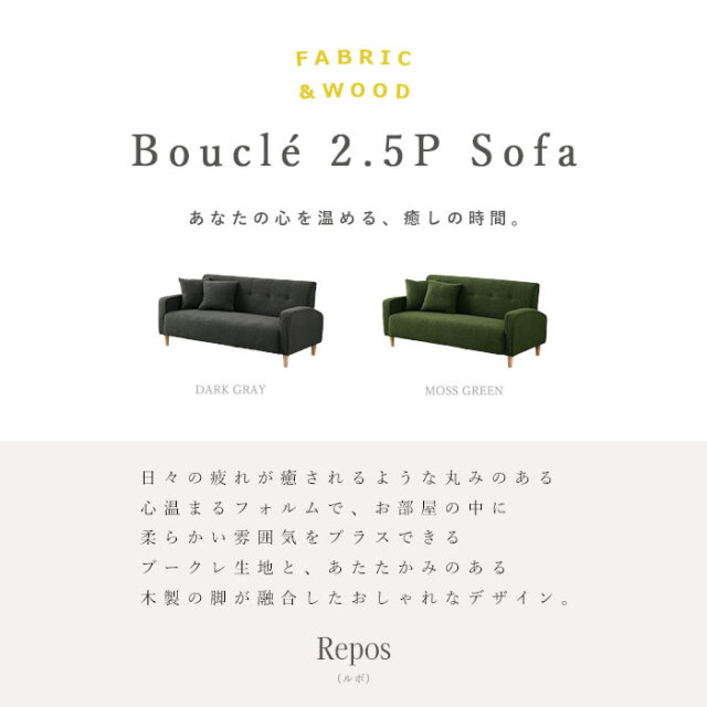 | 商品名 | ブークレ生地 ソファ 2.5人掛け 2.5P ルポ |