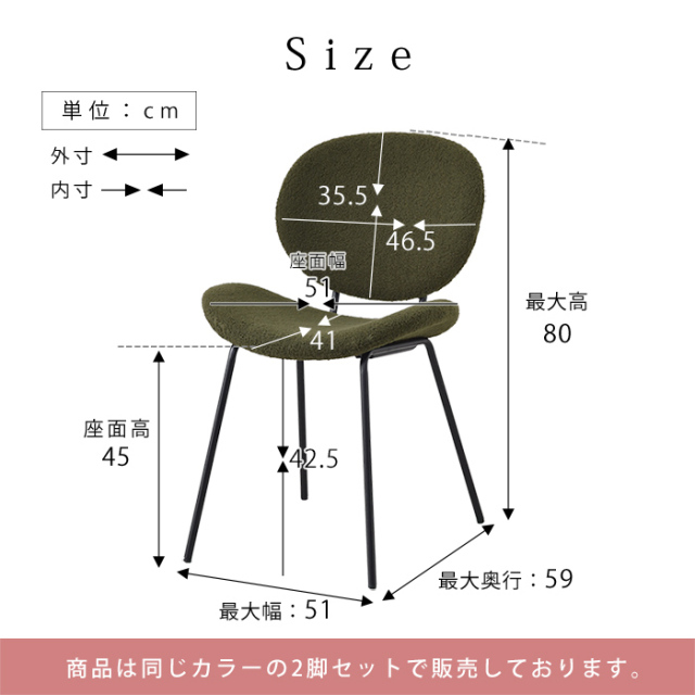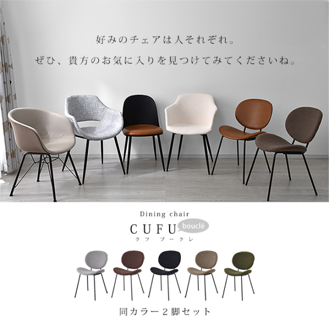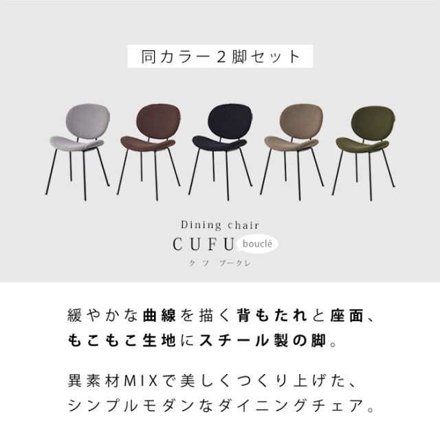 | 商品名 | ダイニングチェア 2脚セット クフ ブークレ生地タイプ |