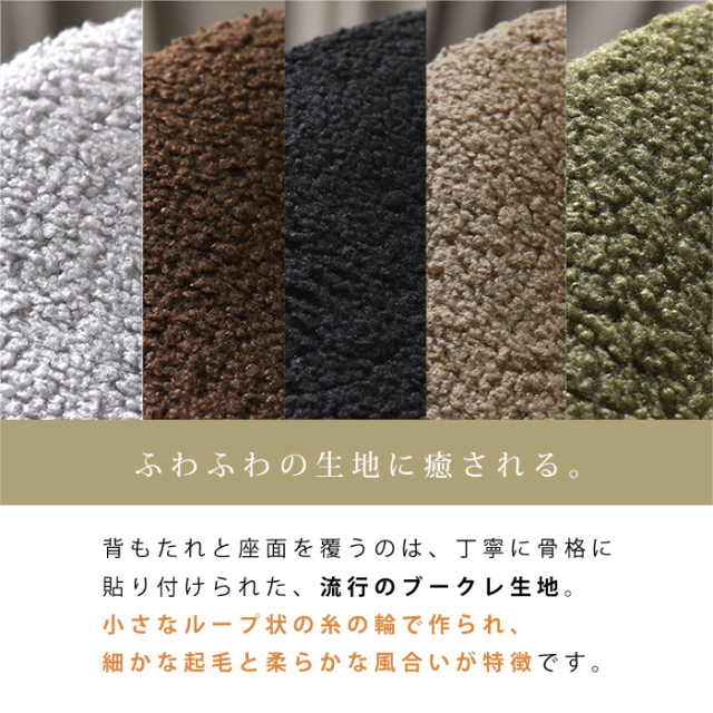| 取扱タイプ | ブークレモカベージュ、ブークレブラウン、ブークレモスグリーン、ブークレグレー、ブークレブラック(黒) |