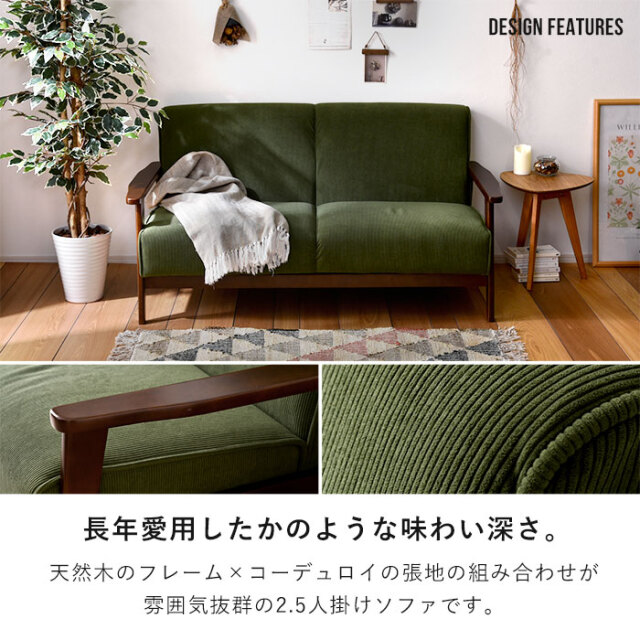 | 商品名 | コーデュロイ 天然木フレーム 2.5人掛け 2.5Pソファ MOOD |