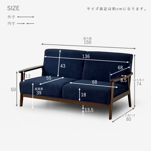| 商品サイズ | (約)幅150cm×奥行き80cm×高さ74cm |