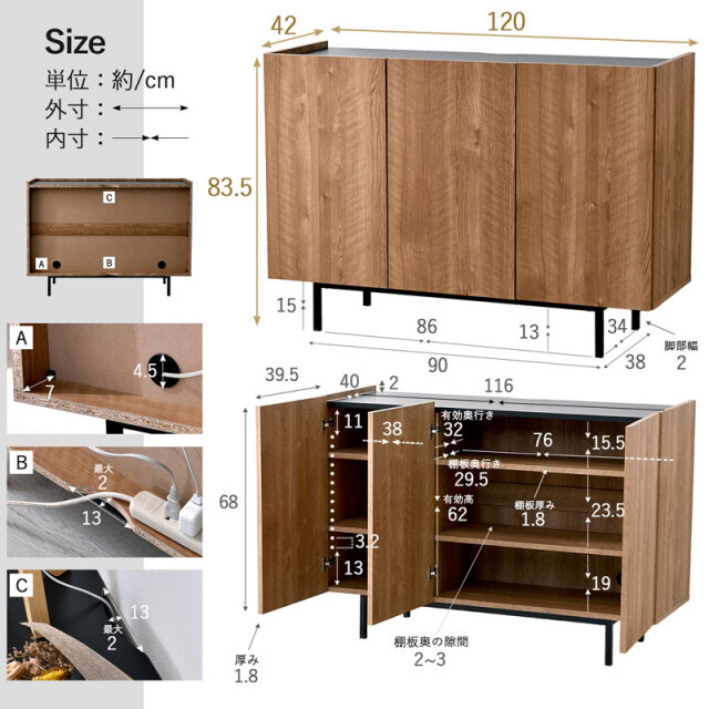 | 商品サイズ | (約)幅120cm×奥行42cm×高さ83.5cm |