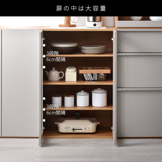 | 自在に組み合わせてあなたのキッチンが理想の収納空間に。 組み合わせ次第でキッチンカウンターや大容量収納棚として使え、リビングの洗練された収納としても大活躍。 単体でも美しく機能的で、空間を最大限に活用できます。 組み合わせ次第で無限大の可能性。 | |