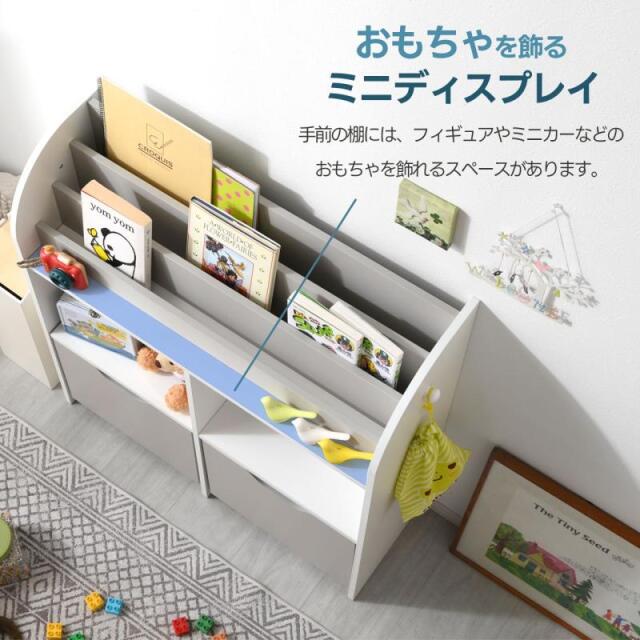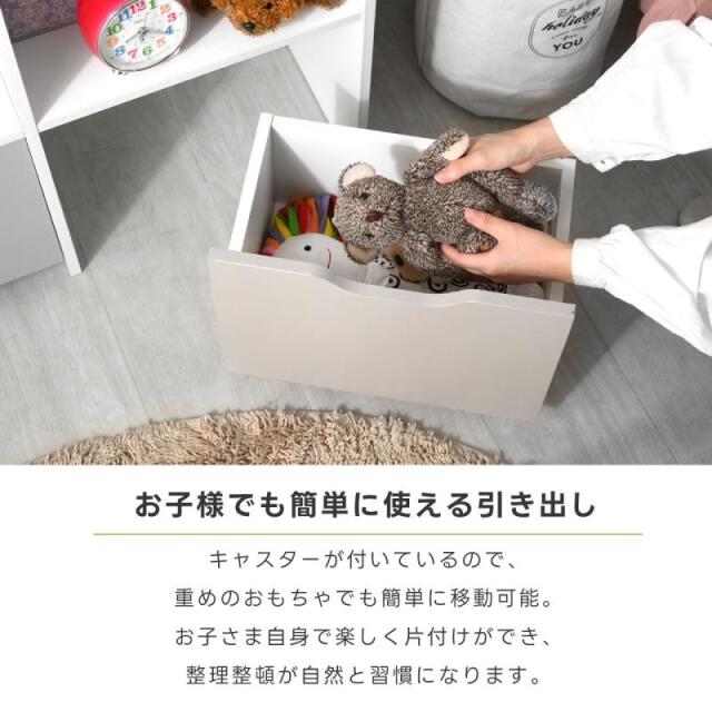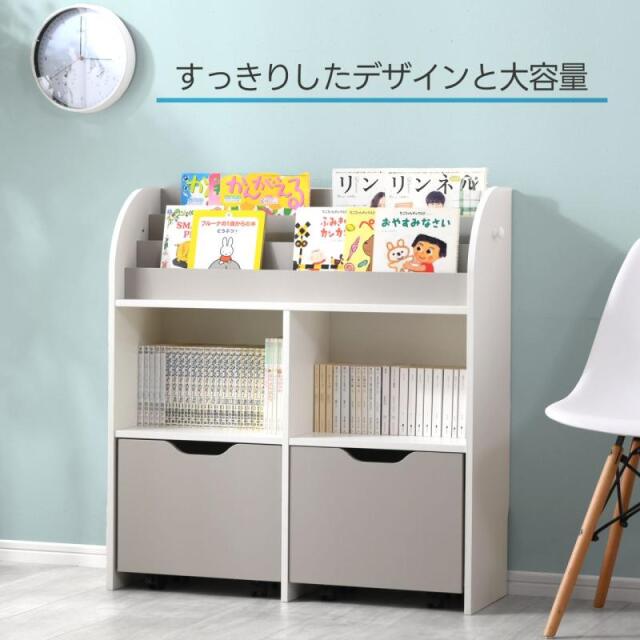 | 絵本もおもちゃもおしゃれに収納 上段には絵本や小物をディスプレイお部屋を明るく彩ります。 手前の棚には、フィギュアやミニカーなどの おもちゃを飾れるスペースがあります。手間なく一台に収納 扉がないタイプなので、お子様でも簡単に サッと収納でき、ランドセルや絵本を これ一台で片付けられます。 お子様でも簡単に使える引き出し キャスターが付いているので、 重めのおもちゃでも簡単に移動可能。 お子さま自身で楽しく片付けができ、 整理整頓が自然と習慣になります。 ロック機能付きキャスター 必要に応じて引き出しをしっかり固定できます 子供が誤って動かしてしまうのを防ぎたい時や 引き出しを安定させたい時に活躍します 便利なサイドフック付き両サイドにフックが付いており、 バッグなどを簡単に掛けられます。 角が丸いデザイン丸い角でお子様でも安心して使えます。 壁にぴったり設置巾木を避けた設計で壁にすっきり設置できます。 絵本や小物をたっぷり収納できる多機能収納棚 | |