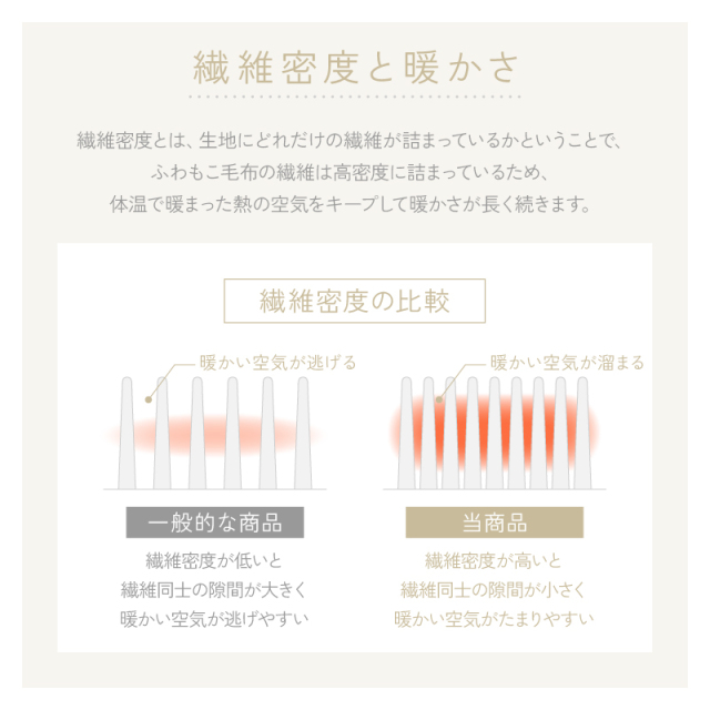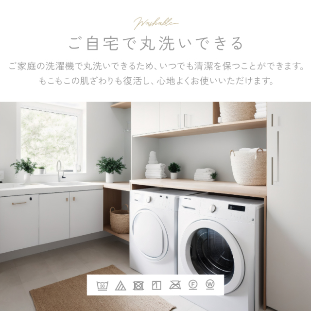 | 上質でワンランク上のとろけるような新感覚の超なめらかタッチ。 シルクのようになめらかなもこもこ肌ざわりと長い毛足が特長のファブリックシリーズです。 暖かい空気をキャッチして逃しにくいから保温性も抜群でずっと暖かさが続く。 静電気を抑える加工で冬場の不快感も軽減します。 ご自宅で手洗いできるため、いつでも清潔を保つことができますよ。 | |
