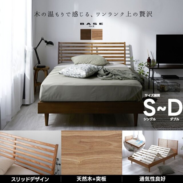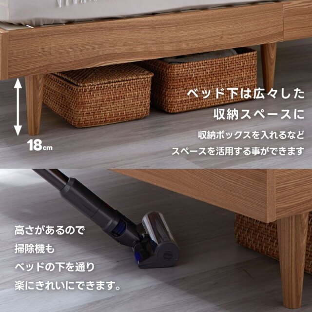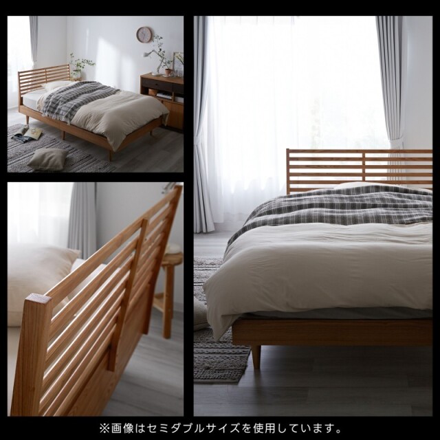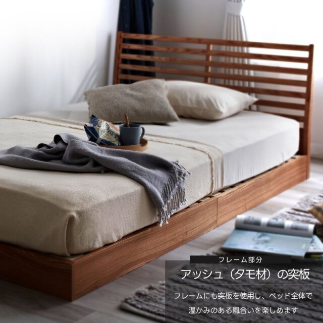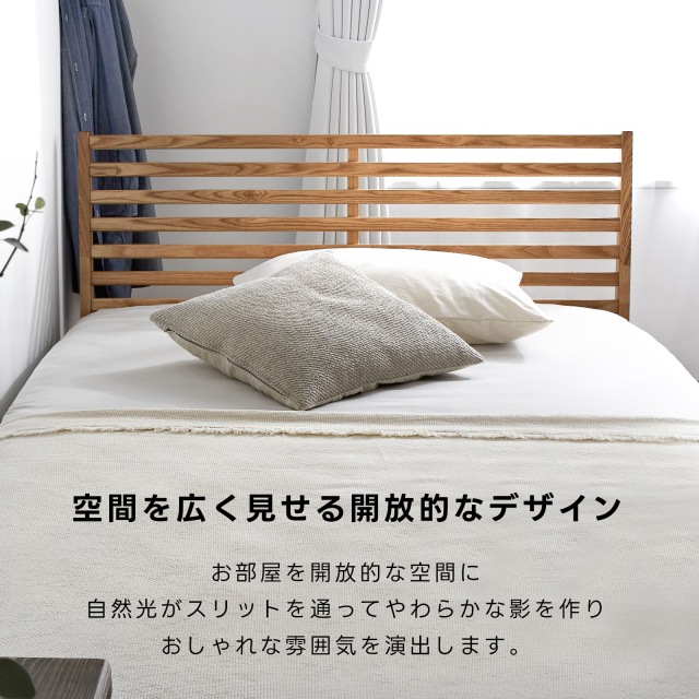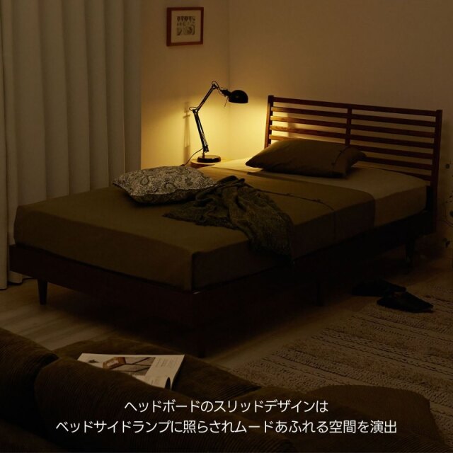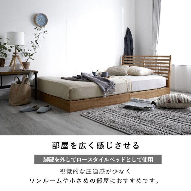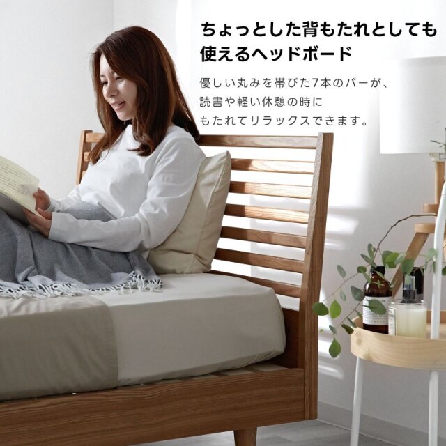 | 手で触れるたびに感じる木の滑らかさと 光に反射する木の表情が、 心を落ち着かせ、心地よい空間を作り出します。 フレームにも突板を使用し、ベッド全体で 温かみのある風合いを楽しめます ヘッドボードは優しい丸みを帯びた7本のバーで、 読書や軽い休憩の時にもたれてリラックスできます。 ヘッドボードのスリッドデザインは ベッドサイドランプに照らされムードあふれる空間を演出 ベッド上で布団を手軽に干すことが可能。 いつでも手間なく快適な寝心地をサポートします。 部屋を広く感じさせる脚部を外してロースタイルベッドとして使用 視覚的な圧迫感が少なくワンルームや小さめの部屋におすすめです。 | |
