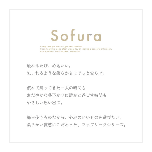 | 触れるたび、心地いい。 包まれるような柔らかさにほっと安らぐ。 疲れて帰ってきた一人の時間も、おだやかな昼下がりに誰かと過ごす時間も、やさしい思い出に。 毎日使うものだから、心地のいいものを選びたい。 柔らかい質感にこだわった、ファブリックシリーズ。 上質でワンランク上のとろけるような新感覚の超なめらかタッチ。 まるでシルクのようになめらかなもこもこ肌ざわりが特長です。 毛足の長さは約30mm!ふわっふわで気持ちいい。 さらに暖かい空気をキャッチして逃しにくいから、保温性も抜群でずっと暖かさが続きます。 パイルが抜けにくいW型編み構造を採用することで、抜け毛が発生しにくくストレス無く快適にお過ごしいただけます(一般的な商品はV型編み、当商品はW型編み)。 目付が480g/m²もあり、高密度だから熱を逃がさずしっかり保温。 空気をため込む層を作り、保温性にも優れています。 裏地はシープタッチのボア生地で柔らかくてあたたかい(※裏地の色は表地と同色)。 ご家庭の洗濯機で丸洗いでき、いつでも清潔を保てます。 もこもこの肌ざわりも復活し、心地よく使えます。 掃除機やコロコロも安心して使えるよう毛羽付着検査に合格し、安心品質を確認済みです(3級以上で合格・5級)。 | |