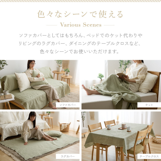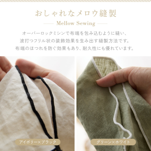 | Hinari(ヒナリ)のマルチカバーは、リネン100%のさらりとした肌ざわりと、ナチュラルな風合いが魅力。 縁には繊細なメロウ縫製を施し、シンプルながらも上品でおしゃれなアクセントを添えています。 ソファカバーやベッドカバー、ラグのように床に敷いたり、目隠しクロスとして使ったりと、多用途に活躍。 北欧テイストやシンプルインテリア、ナチュラルなお部屋とも相性がよく、季節を問わずお使いいただけます。 天然素材ならではのやさしい表情は、使うほどにくったりと馴染み、 日差しに育まれるように、あなたの暮らしに寄り添っていきます。 | |