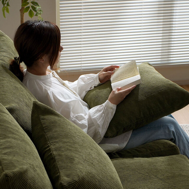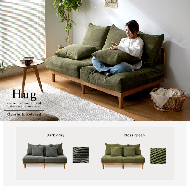 | “こう座りたい”が叶う、くつろぎのあぐらソファ ゆったり奥行であぐらも自然にくつろげる、包まれる座り心地の「あぐらソファ Hug」。 肘掛けのない広々座面と5つのクッションで、どんな姿勢でも快適さをキープ。 クッションは自由にアレンジでき、あぐら・横座り・ごろんなど、思い思いのくつろぎ方が楽しめます。 男女ともにゆったり、あぐらが組める奥行 「男性があぐらをかける」ほどのゆとり奥行で体格を問わず座りやすく、 女性ならお姉さん座りでも余裕があり、ちょっとしたお昼寝にも快適。 あぐらソファを探している方にもおすすめです。 フェザー×シリコンフィルの3層クッション 密度の異なるウレタンにフェザーとシリコンフィルを重ねた3層構造で、 ふんわり包み込みつつ、沈み込みすぎない支えを実現。長時間座っても快適です。 5つのクッションでつくる、自分だけのくつろぎ空間 腰や背中の位置を変えるだけで、自分好みの座り心地に。 読書・スマホ・映画・昼寝など、シーンに合わせて自由にレイアウト可能です。 奥行88.5cmの広々座面で自由な座り方を実現 深く腰掛けても沈み込みすぎず、安定感ある座面が体にフィット。 あぐらも寝転びも思いのまま、心地よいくつろぎを実感できます。 | |