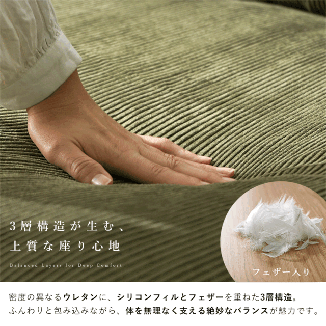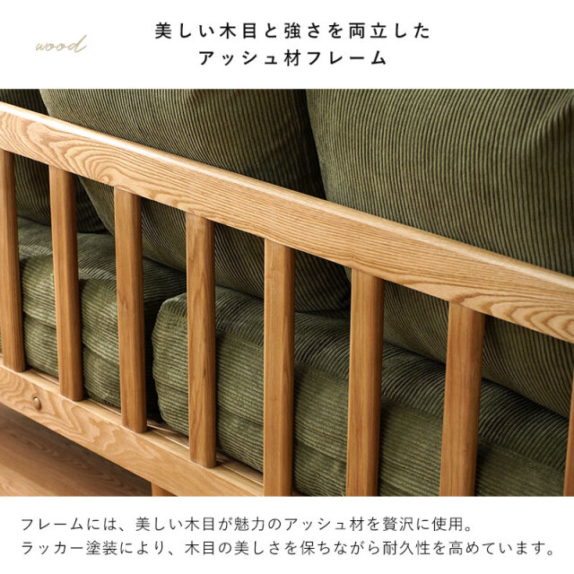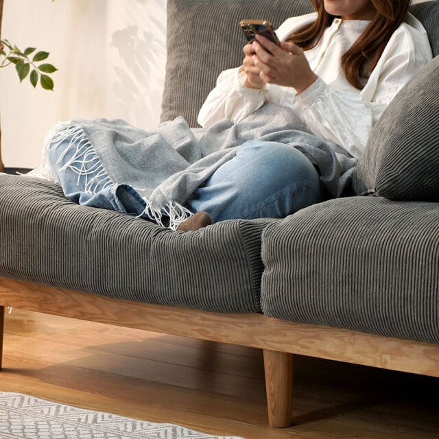 | 商品名 | コーデュロイ 天然木 2.5人掛け ワイドソファ ハグ |
