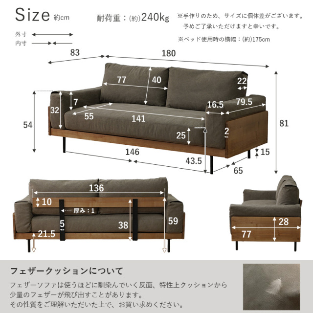 | 商品サイズ | (約)幅180cm×奥行き83cm×高さ78cm |