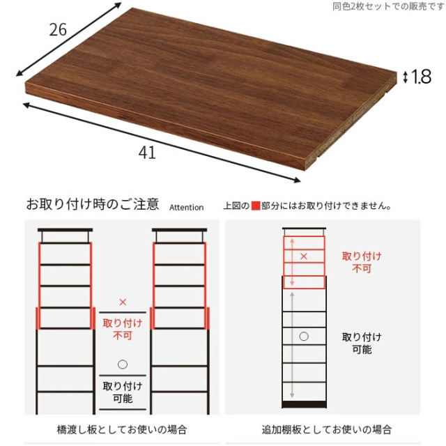 | 商品名 | 天井つっぱり書棚 スラスト 幅45cm 奥行26cm 専用 棚板2枚セット |