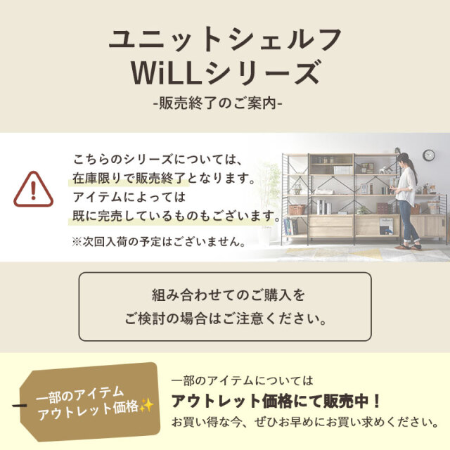 | 商品名 | ユニットシェルフWiLL ガラス扉キャビネット+キャビネット用フレーム |