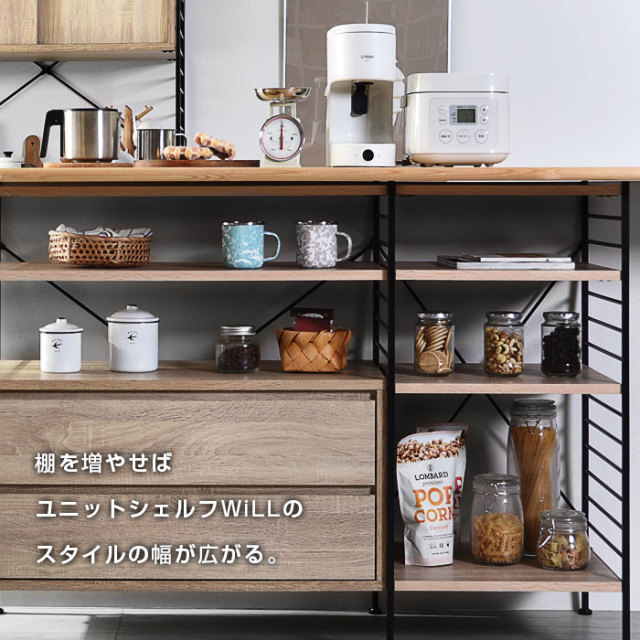| ヴィンテージ感漂う美しい木目と、スタイリッシュな細フレームのコンビネーションが魅力のユニットシェルフWiLL(ウィル)が登場です。 こちらは幅47cmシェルフの追加棚板2枚組のになります。 シリーズで組合せてリビングやキッチン、ランドリーや隙間までどんな場所でも大活躍。 様々なタイプを揃えているので、壁面収納としてクローゼットやハンガーラックとして、食器棚やテレビ台などのローボードとして、おしゃれな本棚や収納ボックスとして、組合わせて幅広い用途でお使いいただけるのが魅力です。 オーダーメイドの様な理想の空間を創造するユニットラックがお部屋を彩るオススメのアイテムです。 | |
