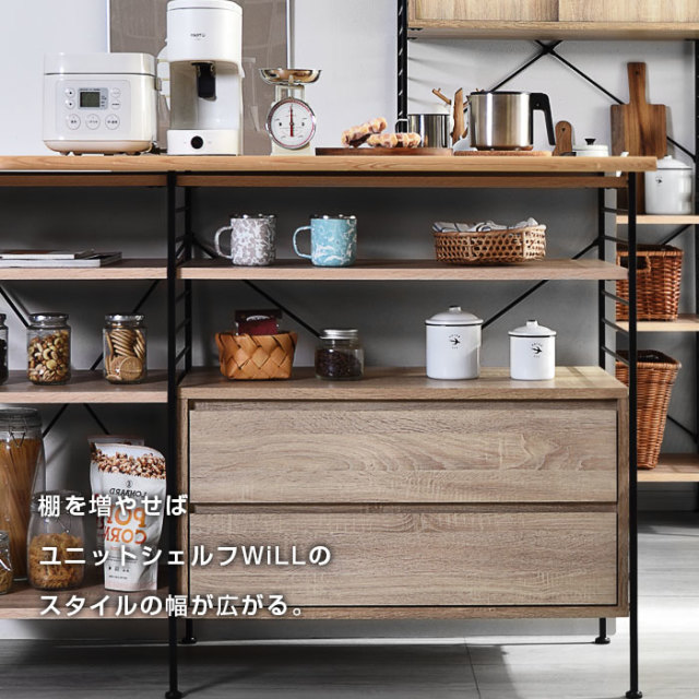 | ヴィンテージ感漂う美しい木目と、スタイリッシュな細フレームのコンビネーションが魅力のユニットシェルフWiLL(ウィル)が登場です。 こちらは幅82cmシェルフの追加棚板2枚組のになります。 シリーズで組合せてリビングやキッチン、ランドリーや隙間までどんな場所でも大活躍。 様々なタイプを揃えているので、壁面収納としてクローゼットやハンガーラックとして、食器棚やテレビ台などのローボードとして、おしゃれな本棚や収納ボックスとして、組合わせて幅広い用途でお使いいただけるのが魅力です。 オーダーメイドの様な理想の空間を創造するユニットラックがお部屋を彩るオススメのアイテムです。 | |