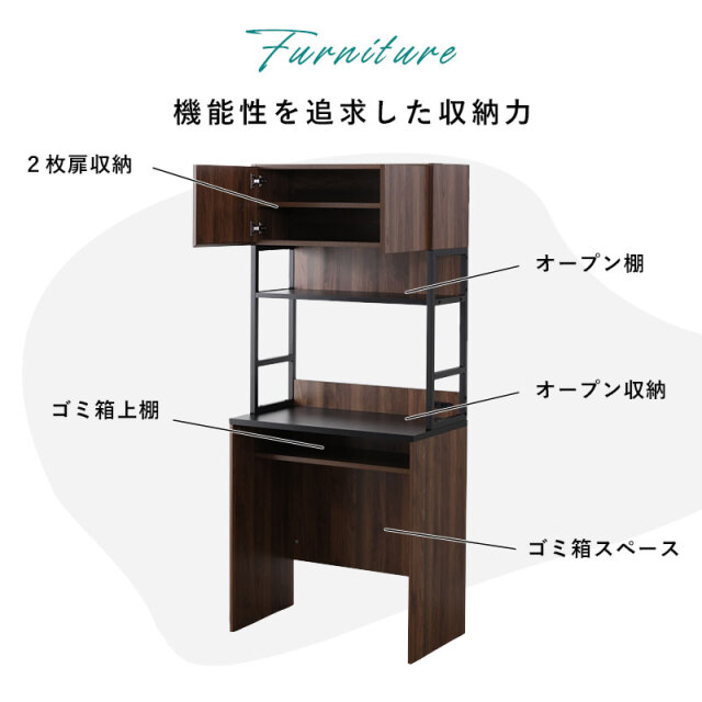 | 商品名 | デザイン キッチン収納 ゴミ箱上ラック キッチンボード クエス |