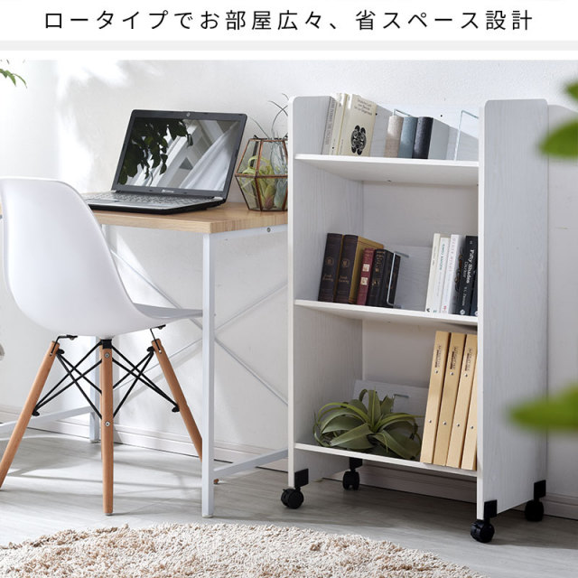 | 移動が簡単なので整理整頓をしたい場所に手軽に持ち運べます。 ファイルや雑誌などの様々なサイズのアイテムをまとめて収納でき、省スペース設計でありながら大容量を誇ります。 高さを抑えることで視界を遮らず、お部屋全体を広く感じさせます。 また、コンパクトながらもしっかりとした収納力を備え、ファイルや雑誌などをまとめて整理整頓できます。 | |