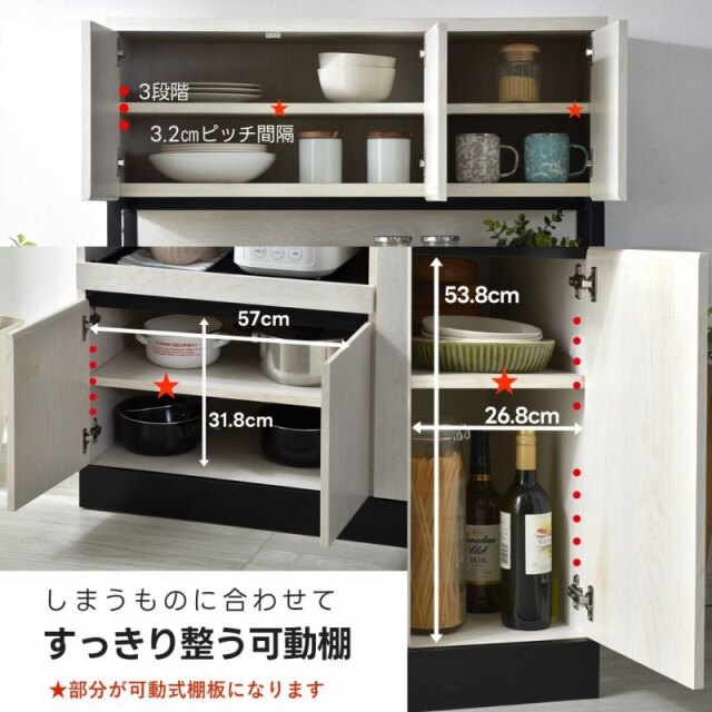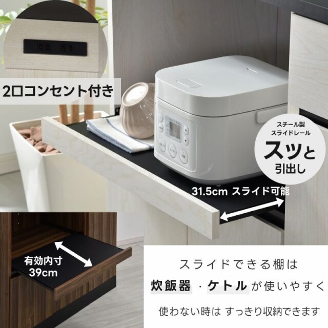 | 耐荷重 | 【天板】(約)25kg 【スライド棚】(約)7kg 【可動棚】(約)5kg |