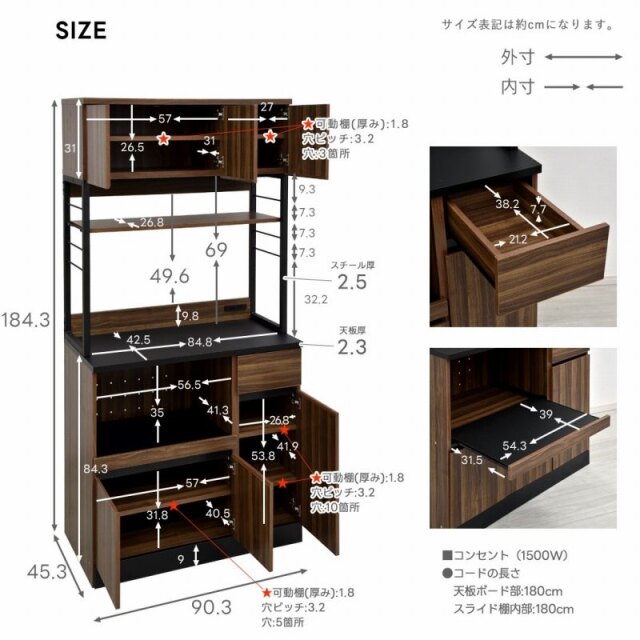 | 商品サイズ | (約)幅90.3cm×奥行45.3cm×高さ184.3cm |