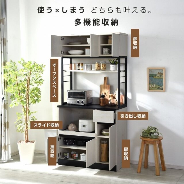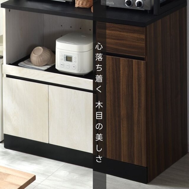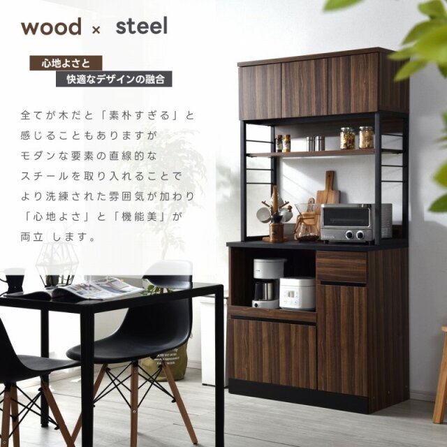 | 温もり木目の風合いと軽やかなフレームデザインで明るいキッチンを演出します。 広々としたオープンスペースやスライド棚を備えた充実の収納力でカフェのような雰囲気あふれるおしゃれ空間を生みだします。 美しい木目調の質感と洗練されたスチールが調和したデザインは組み合わせた雰囲気のある絵になる佇まいです。 直線的で細身のホワイトスチールを使用する事で空間をスッキリと引き締まり、圧迫感の無い開放的なキッチン作りに役立ちます。 | |
