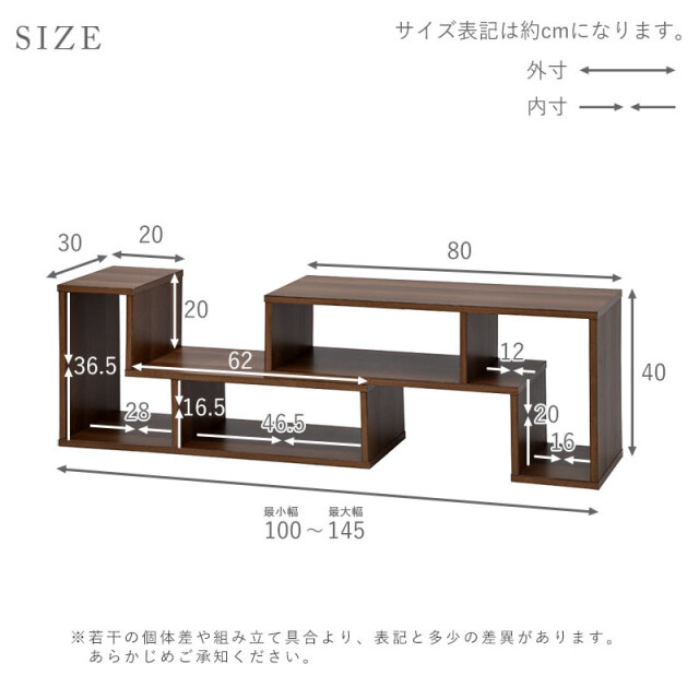 | 商品サイズ | (約)幅100~145cm×奥行き30cm×高さ40cm |