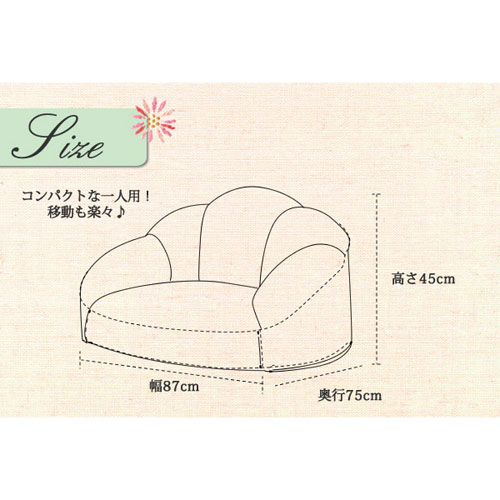 | 安心安全のこだわりの日本製。 クロワッサンのようなデザインがとにかくカワイイ、デザイン コンパクト ソファが登場♪ 見た目の可愛いデザインはもちろん、ソファとしての機能性も抜群。 ふわふわもこもこの優しい肌ざわり、座面の高さも16cmで厚さもバッチリです。 優しく癒される美しい曲線デザインに座り心地も抜群。 さらにコンパクトなので、移動もラクラク。 お洒落カワイイ、お部屋が華やぐソファをお楽しみください。 | |