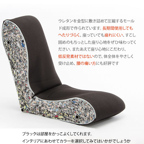 | 背筋が真っすぐに!猫背になりがちな方におすすめ。美しい姿勢を保つために形を作られた座椅子です。 姿勢を気にする方はソファや椅子に置いてもOK! おしりにもフィットしやすいふわふわで優しい設計です。 そして安心の日本製!リクライニングのギアも国内生産の安心の座椅子です。 14段階のリクライニング付きで、お気に入りの角度でお使いいただけます。カラーもかわいい色やクールなカラーがたくさんありますので、選ぶ楽しさがあります。 サイズがコンパクトで邪魔にならないローチェアでゆったりくつろいでくださいね。 安心の転倒防止機能付きです。 | |