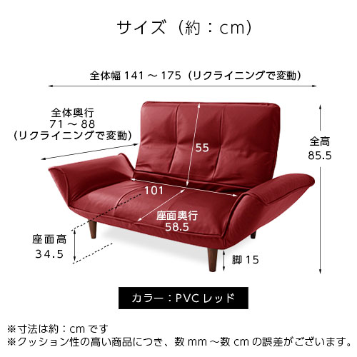 | 商品サイズ | (約)幅141~175cm×奥行き71~88cm×高さ29.5~85.5(脚15)cm 座面厚さ:(約)21cm 座面高:(約)34.5cm(脚15cm) 座面幅:(約)101cm 座面奥行:(約)58.5cm |
