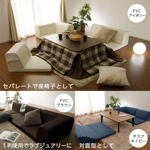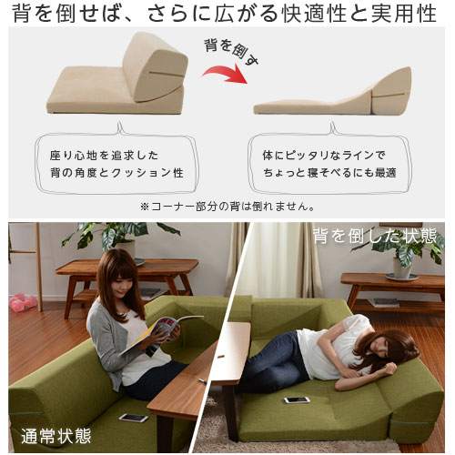 | ロータイプのコーナーソファ3点セットです。 4人ゆったり座れるリビングソファとして、セパレートでこたつの座椅子として、背を倒せばゆったり寝そべるベッドソファとして、場面を選ばず大活躍。 座面が低いので、お子様からお年寄りまで座りやすいのも嬉しいポイント。 1人掛けの1Pソファ、2人掛けの2Pソファ、コーナーソファの3点セット。 1Pソファと2Pソファは背もたれを倒す事で、よりゆったりくつろげます。 Made in Japan 「日本製」のしっかりした作りで、安心してお使いいただけます。 生地は3種類の上質な素材をご用意。 起毛素材のテクノ素材。高級感あるタスク素材。レザーのようなPVC素材からお好みに応じて選択可能。 合計15色のカラーから、お部屋に合わせてお選びいただけます。 | |