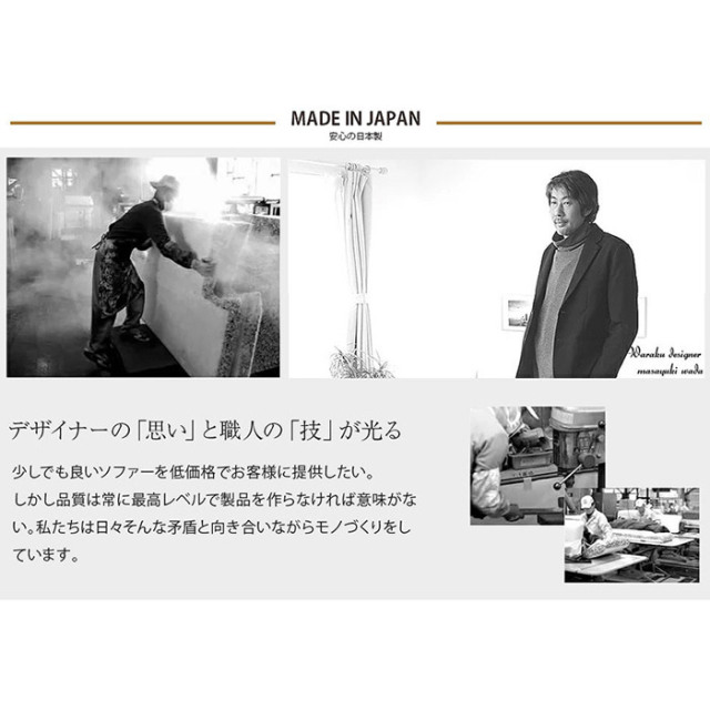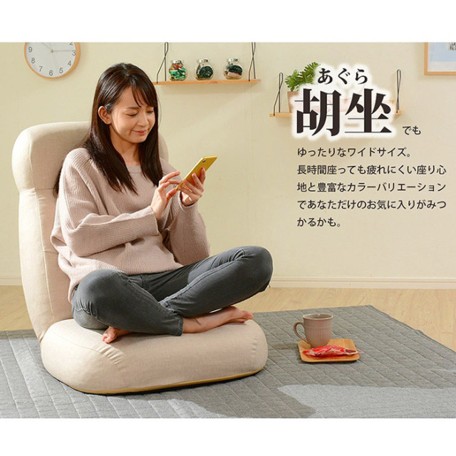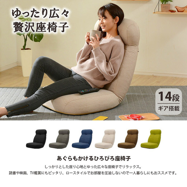 | しっかりとした座り心地とゆったり広々な座椅子でリラックス。 読書や映画、テレビ鑑賞にもピッタリ、ロースタイルでお部屋を圧迫しないので一人暮らしにもおすすめです。 あぐらでもゆったり座れるワイドサイズ。長時間座っても疲れにくい座り心地と豊富なカラーバリエーションが魅力的です。 ハイバックだから首と頭をしっかりホールド。14段階のリクライニングギア搭載なので、自分にちょうどいい角度を見つけてリラックス。 贅沢なボリュームは端までしっかりとウレタンがつまっている証拠。柔らかすぎず、硬すぎないから長時間座っていても体に負担がかかりにくい設計になっています。 座椅子には欠かせない可動ギア。実績のある日本メーカー「KOYO製」の14段階リクライニングを採用。安心の品質をお届けします。 デザイナーの「思い」と職人の「技」が光る、安心の日本製も嬉しいポイント。 | |
