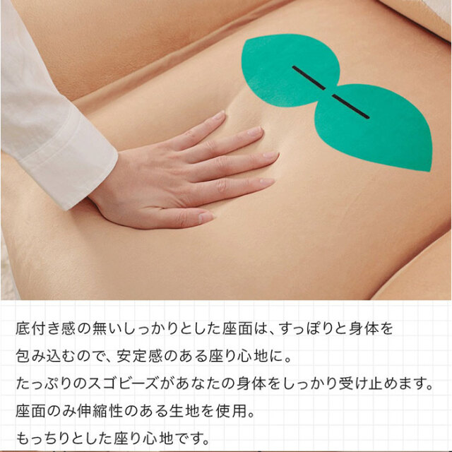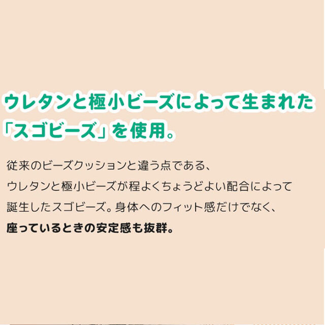 | 商品仕様 | 【中材】 発泡ポリスチレンビーズ、高弾性ウレタンフォーム 【生地】 中袋:ポリエステル88%、ポリウレタン12% 収縮する生地:ポリエステル95.2%、ポリウレタン4.8% 収縮しない生地:ポリエステル100% |