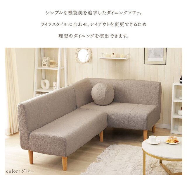 | シンプルな機能美を追求した、ブークレ生地のダイニングソファ。 2人掛けタイプとコーナータイプのセットです。コーナータイプは左掛けタイプか右掛けタイプのどちらかお好きな方をお選びいただくことが可能です。 ライフスタイルに合わせレイアウトを変更できるため理想のダイニングを演出できます。 | |