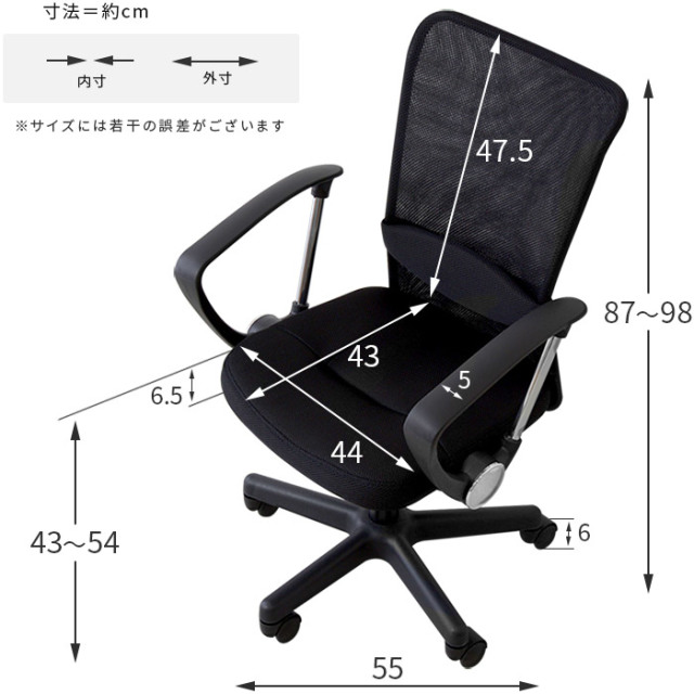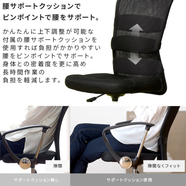 | 商品仕様 | 本体:ポリエステル(メッシュ)/ナイロン/ウレタンフォーム ガス圧昇降式 ランバーサポート付 |