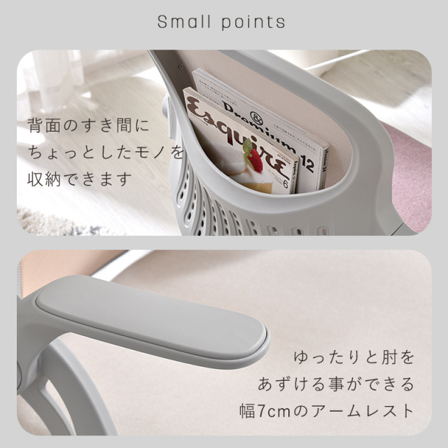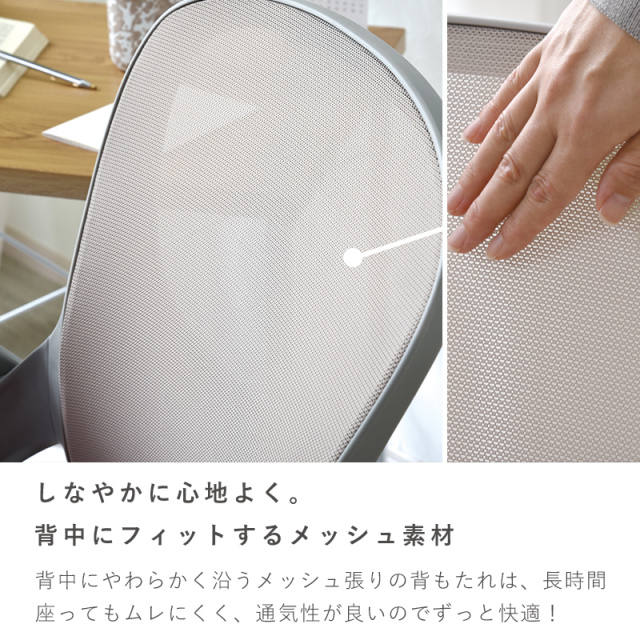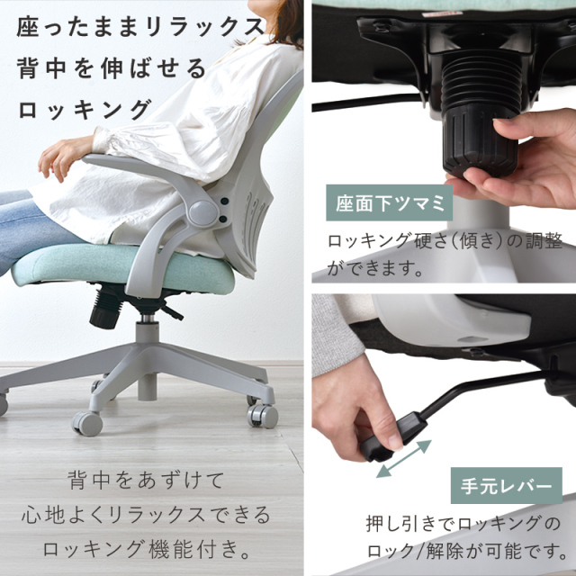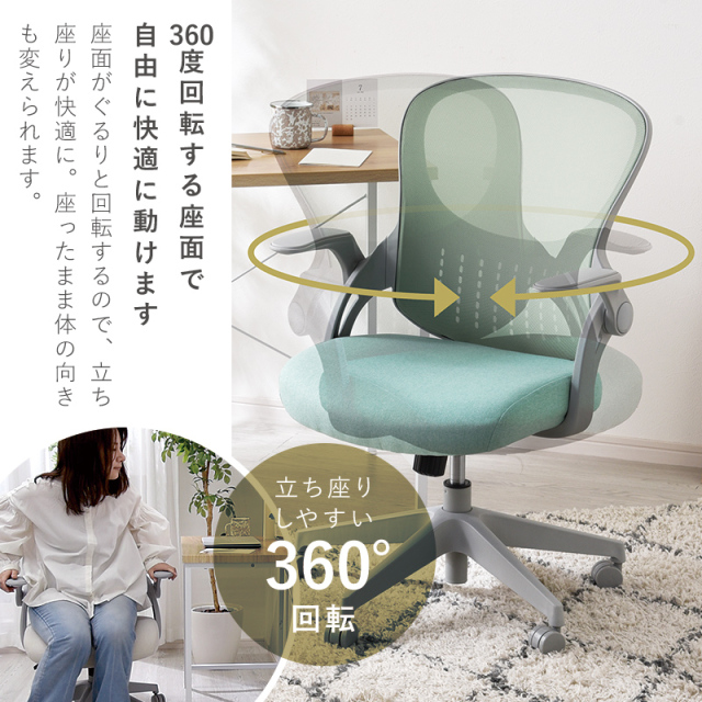 | メッシュ生地オフィスチェア「Frutto」は、見た目も座り心地も抜群のオフィスチェアです。爽やかなシャーベットカラーがあなたのデスク周りを明るく彩ります。背面は通気性の良いメッシュ素材で、長時間座っていても快適に過ごせます。360度回転する座面で、どんな動きもスムーズに。アームレストは跳ね上げ式だから、使わない時はさっとデスクに干渉することなく収納できます。座ったままの高さ調整も簡単で、自分にぴったりの高さに調節可能。さらに、リラックスしたい時はロッキング機能で身体を伸ばしてリフレッシュ!多機能でおしゃれなFruttoで、毎日の仕事がもっと楽しくなりますよ。 | |