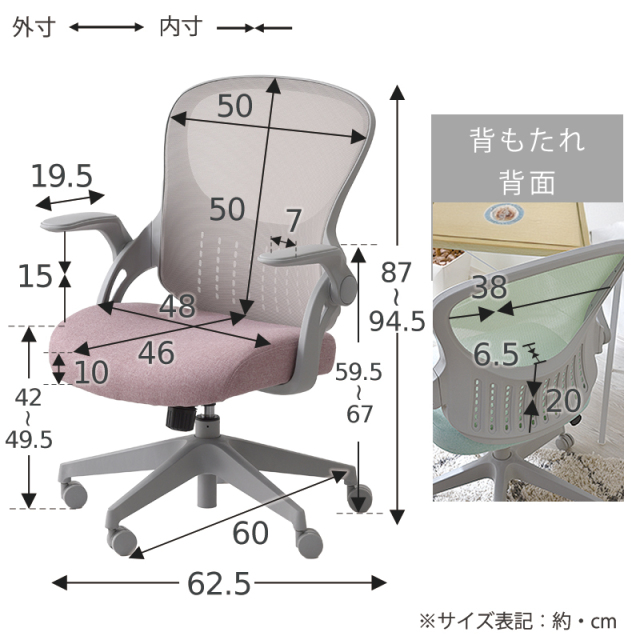 | 商品サイズ | (約)幅62.5cm×奥行き60cm×高さ87~94.5cm |