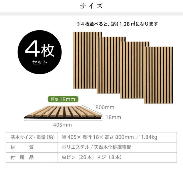 | 商品サイズ | (約)幅40.5cm×奥行き1.8cm×高さ80cm(1枚あたり) |