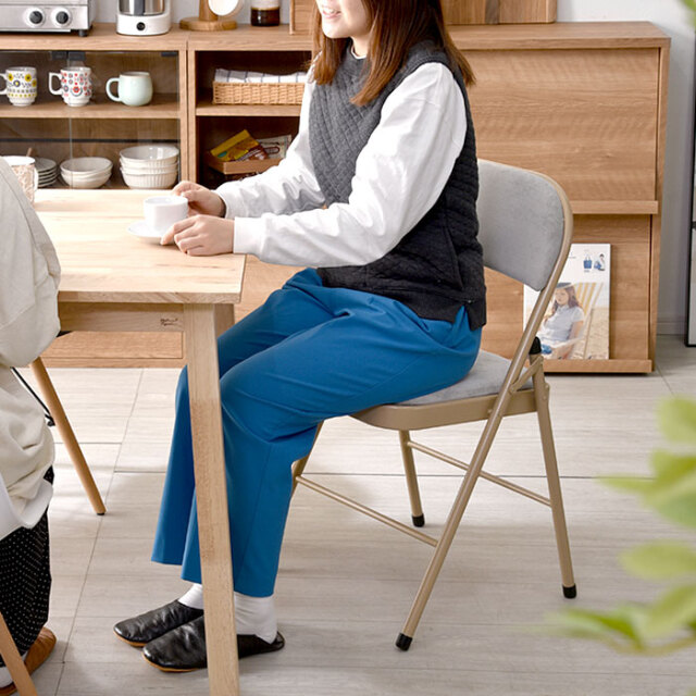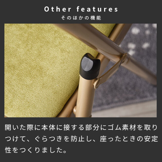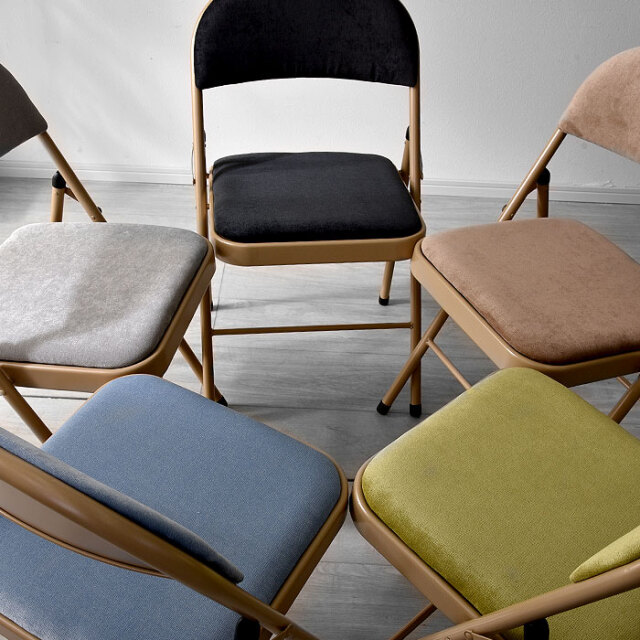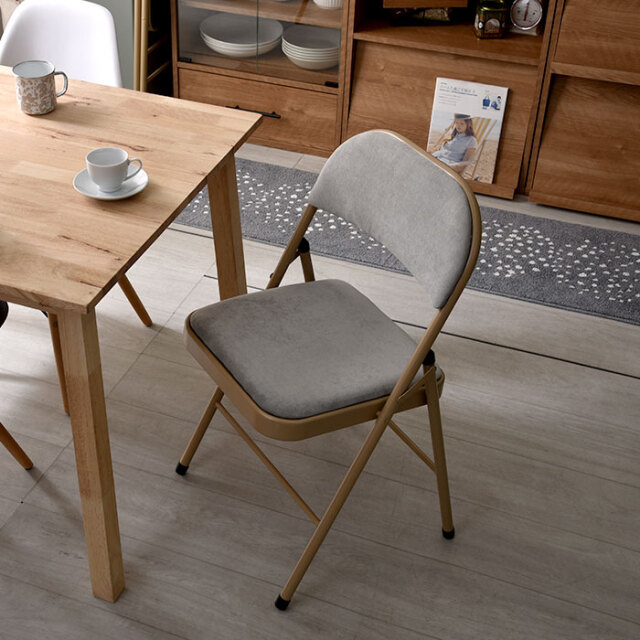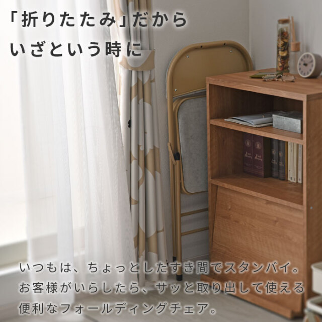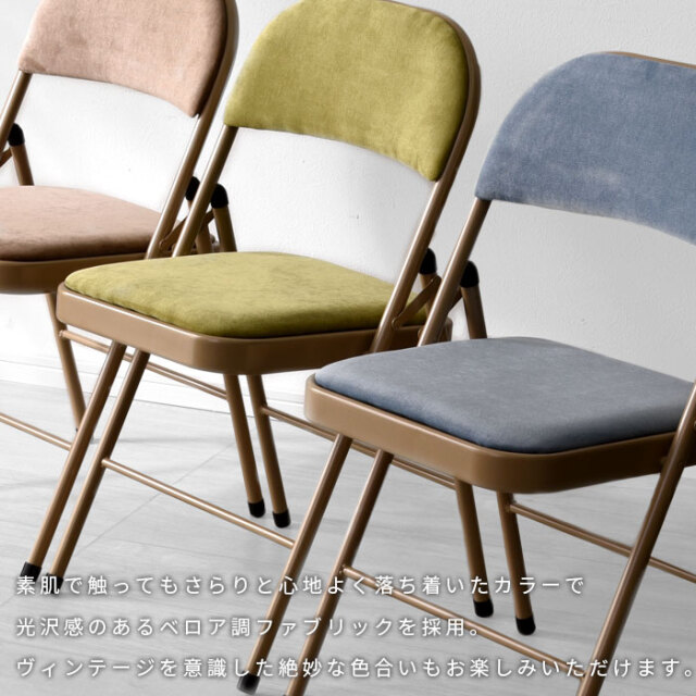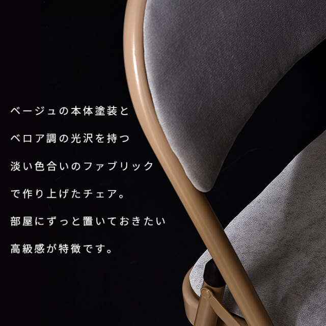 | 折りたたみや心地よい座り心地という実用性とヴィンテージのようなデザイン性を兼ね備えたフォールディングチェアです。 ベージュカラーのスチールと、くすみカラーと呼ばれる淡いカラーで、まるでベロアのような光沢感や表情のファブリックの絶妙な色合いのバランスが洗練された空間を演出します。 どこかなじみのある、懐かしいデザイン。折りたたみチェアなのでサッと出して来客用や使う時だけ出したい方に。 緊急用だけではなく、常に使うオフィスや自宅のデスクと合わせて様々なシーンでも活躍します。ディスプレイとして置いてもおしゃれですね。 使用しない時は折りたたんでスッキリ収納。細い隙間にも収納できるので、邪魔になりません。 | |