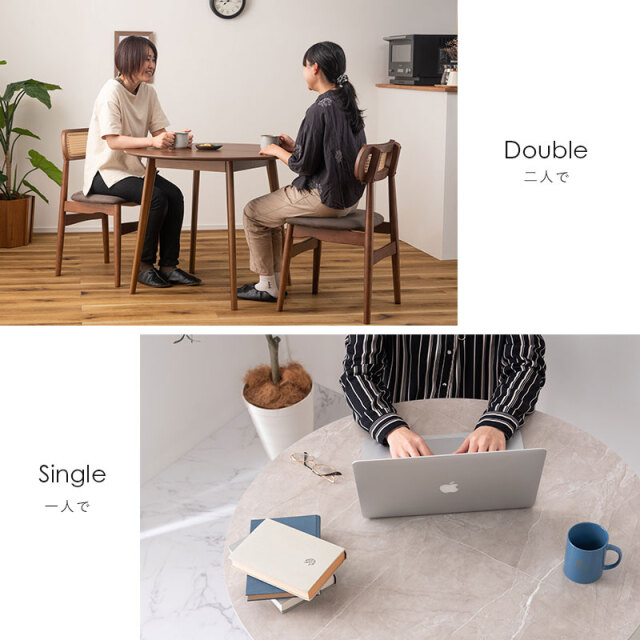 | どんなインテリアにも合わせやすい、シンプルなラウンドテーブル お部屋にそっと温もりを添える、北欧風デザインのラウンドテーブル。その優しい佇まいは、どんなインテリアにも自然と溶け込み、洗練された空間を演出します。 特に目を引くのは、モダンな印象を与える大理石調の天板。「グレー」と「ストーンホワイト」の2色は、お部屋に上質なアクセントをプラスします。 直径90cmの円形天板は、省スペースながらも二人でゆったりと使える絶妙なサイズ感。カフェタイムや軽食はもちろん、趣味の時間を共有するにもぴったりです。 天板下の幕板は、テーブルの強度を高めるだけでなく、さりげないデザインのアクセントにも。安定感と美しさを両立しています。 組み立ては、付属の六角レンチで脚と天板を固定するだけの簡単設計。組み立てが苦手な方でも安心です。届いたその日から、心地よい空間が広がります。 | |