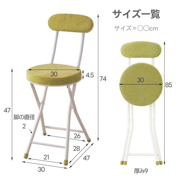 | 商品サイズ | (約)幅30cm×奥行き47cm×高さ74cm(1脚あたり) |