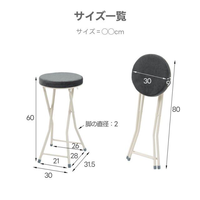| 商品サイズ | (約)幅30cm×奥行き31.5cm×高さ60cm(1脚あたり) |