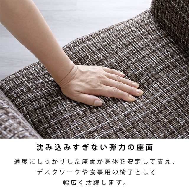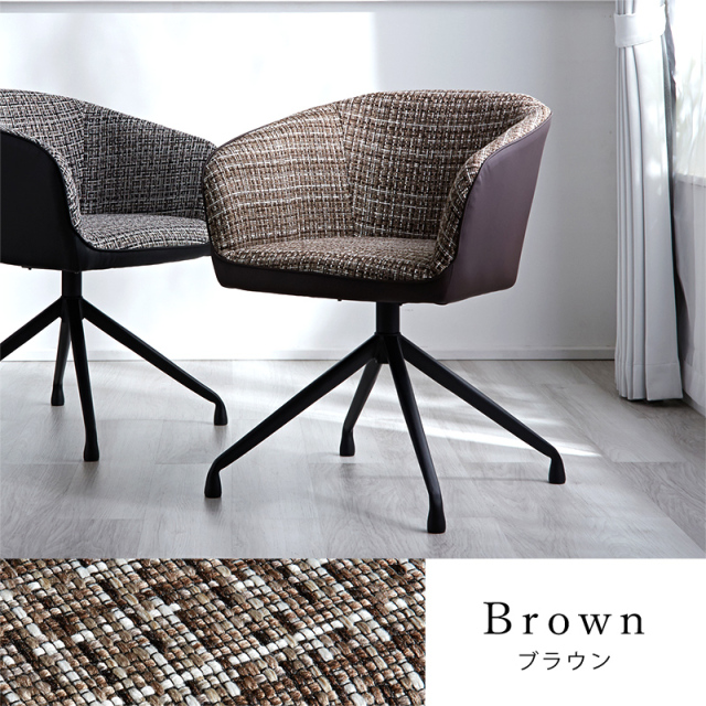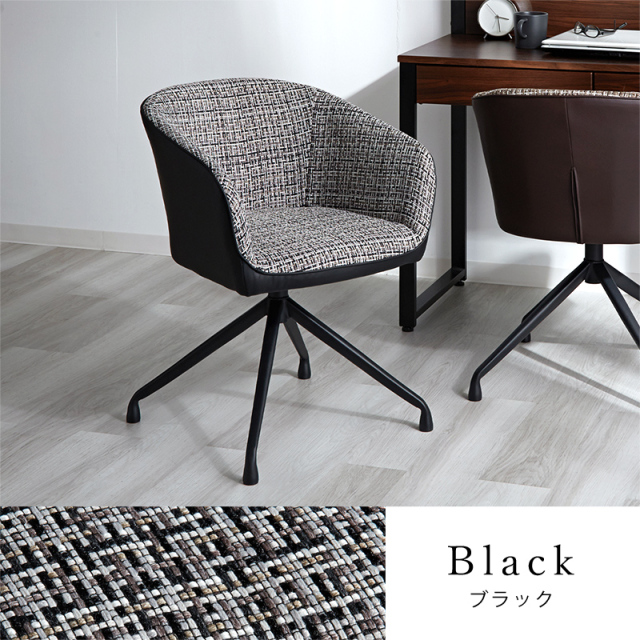 | PUレザーとファブリックの異素材チェア。 シェル型の形状が座る人を包み込み、安定とリラックスの座り心地を与えます。 回転式なので、椅子の位置を変えずに体の向きを変えられるのがうれしいポイント。 座面高は43cmで、男女ともに座りやすい高さ。 デスクワークや食事用の椅子としてマルチに使いやすいサイズ感です。 組み立ては付属の六角レンチで座面と脚部をねじで固定するだけ。 届いたその日に組み立ててお使いいただけます。 | |